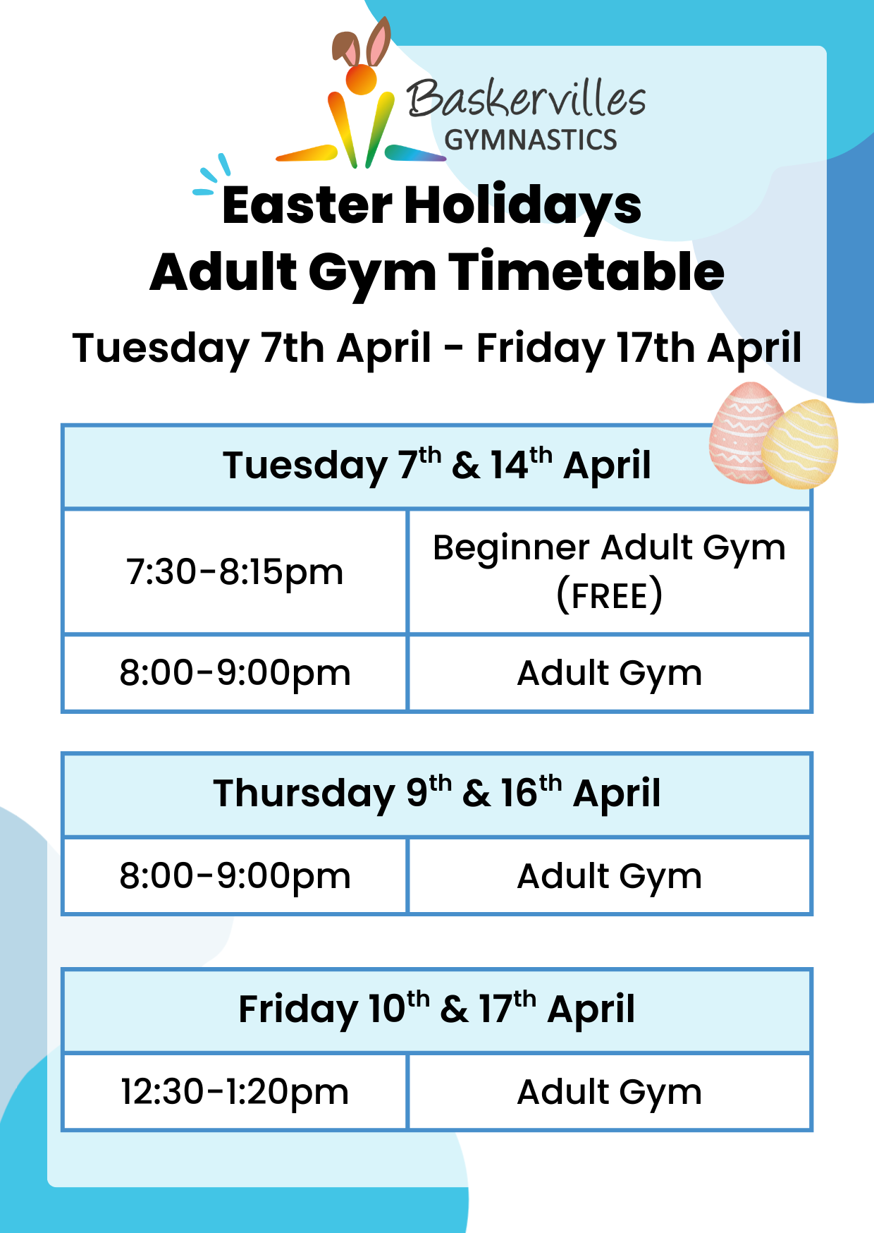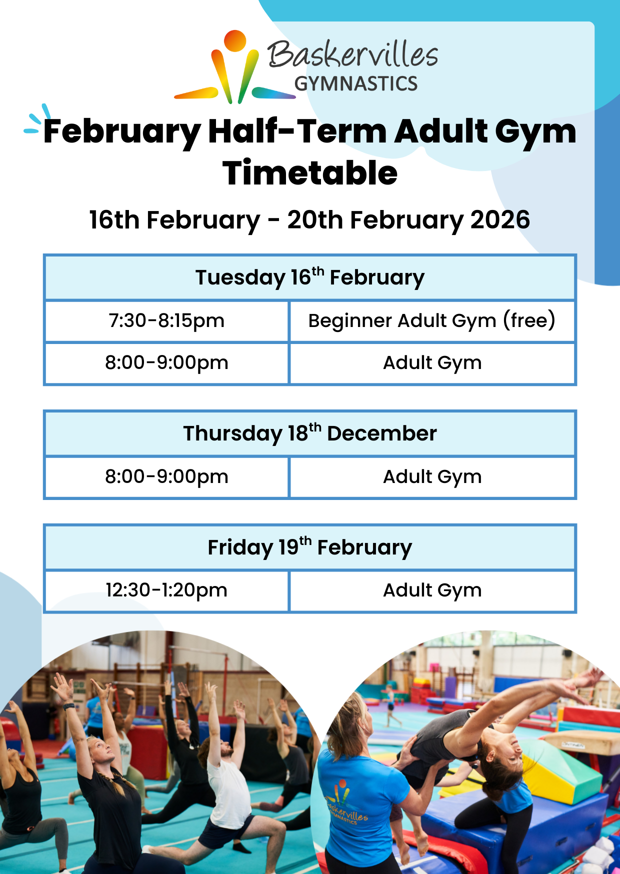 “My experience at Baskervilles started when I was around 6 years old. I fondly remember the incredible guidance and support given by the coaches which helped me progress through to the squad, giving me the chance to compete in a few local and national competitions. Having reached GCSE age, I (regrettably) left to focus on my education. Around 12 years have passed since then and I've recently re-joined Baskervilles for their Adult Gym sessions. It was immediately clear on my return that the values held and unconditional love for the sport has only grown stronger, and while the coaching team has changed a little (though there are some familiar faces), Paul and the team have developed the gym into an amazing place to work out, learn new skills, push yourself both physically and mentally, and most importantly; have fun whilst doing it! The variety of apparatus used in each session means there is always something new to try, and the coaches do a phenomenal job at supporting us and giving expert, personalised guidance on how to improve on each piece of equipment.